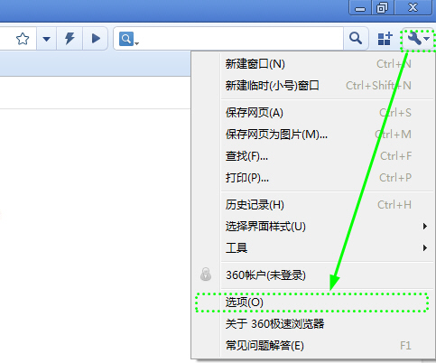 點(diǎn)擊瀏覽器右上角"常用菜單"按鈕,選擇"選項(xiàng)"。